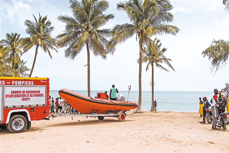 9月9日,搜救队员准备离开塞内加尔姆布尔的海滩。塞内加尔海军10日说,一艘载有非法移民的船只日前在该国西部海域沉没,已造成至少26人死亡。塞内加尔海军当天在社交媒体上说,8日获悉一艘载有非法移民的船只在塞西部姆布尔市附近海域沉没,军方随即派出船只展开搜救,9日和10日共打捞出26名遇难者遗体。搜救工作仍在继续。 新华社/法新