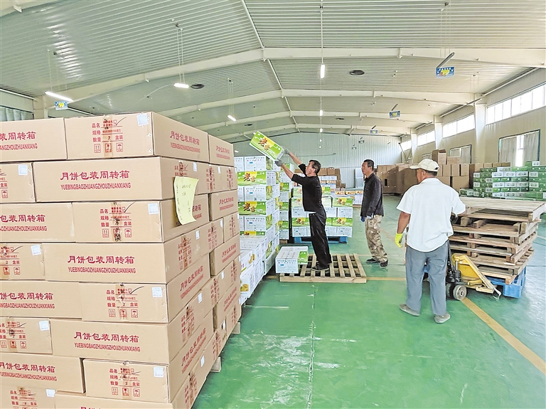 在青铜峡市宁青食品有限责任公司仓库里,仓库门口摆放着一排样品,供顾客选购样式和口味。公司总经理杨继旭边忙着给前来选购的顾客装货边说:“需求量大的客户,每年节前就会下单预订,等需要的时候直接来厂里取货,目前包装好的月饼已售出大半。”