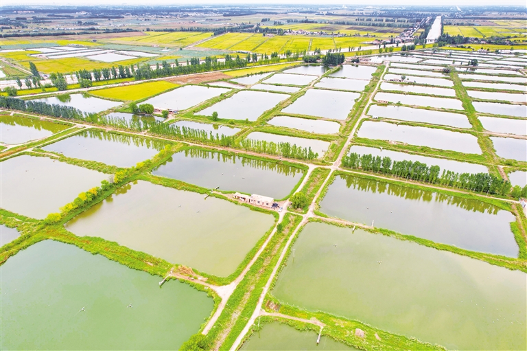 9月14日,银川市兴庆区通贵乡一片片鱼塘与稻田相映成景,呈现鱼肥水美好丰景。近年来,兴庆区充分发挥区位优势和资源优势,加大渔业产业结构优化调整,水产养殖面积达16940亩,去年渔业总产量6410吨,总产值达1.08亿元。本报记者 马楠 王洋 摄
