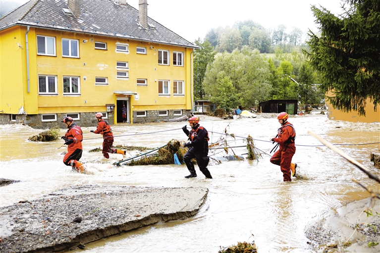 9月15日,在捷克耶塞尼克,救援人员开展救援工作。 欧洲东部和中部多地近日遭遇强风暴雨,在部分地区引发洪灾。 新华社/路透