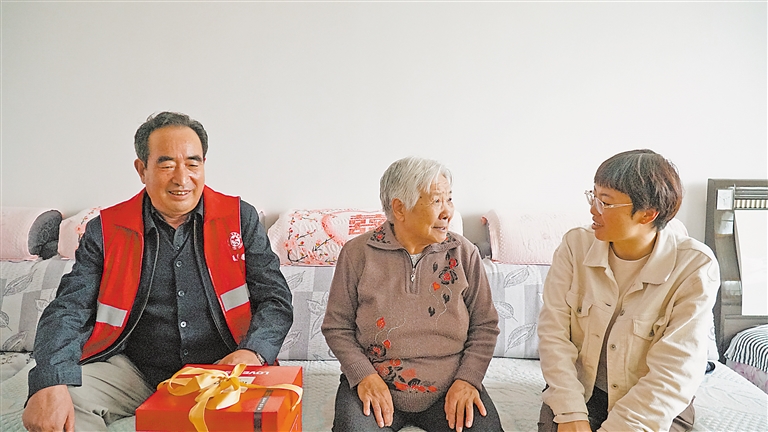 “老姐姐,快开门,我们给你送月饼来了。”下午3时,社区志愿者段生贵来到西夏区宁馨嘉园小区独居老人张和花家中,为老人送上中秋的祝福。