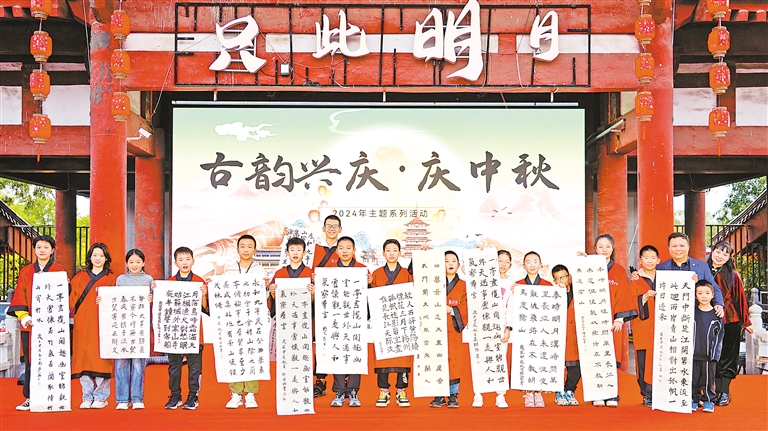 9月17日,书法爱好者展示古诗词书法作品。当日,银川市兴庆区在海宝公园文化园举办“古韵兴庆·聚赏秋华”中秋游园活动中,剪纸、糖画、盖印等活动让游客亲身体验到传统文化的独特韵味。 宁夏日报报业集团全媒体记者 乔新宇 摄
