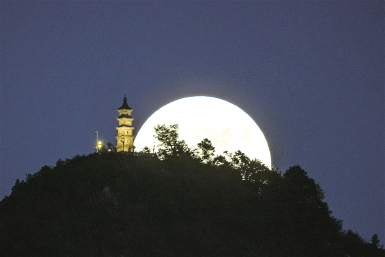9月17日在浙江省台州市黄岩区拍摄的月亮。中秋月明,神州各地人们同赏一轮明月,欢度传统佳节。 新华社发