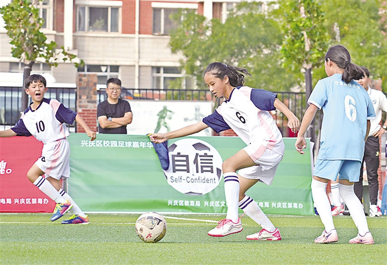 9月18日,2024年银川市兴庆区“健康杯”第三届女足联赛暨足球嘉年华在兴庆区第十九小学鸣哨开赛。本次比赛由兴庆区教育局、兴庆区文化旅游体育广电局、兴庆区禁毒办联合主办,设小学组和中学组2个组别,整个赛事为期13天,共计进行78场比赛,兴庆区35所中小学校近500名校园女子足球运动员参加。 宁夏日报报业集团全媒体记者 高晓刚 摄