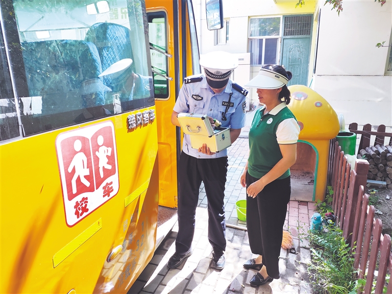 “校车检查的每一项内容都有其必要性。以车身的反光标识为例,冬季的白天相对较短,学生上学时,天还没亮透,反光标识可以用来表明校车身份,提醒其他车辆注意和避让,提升行驶安全性。”白璐说。另外,检查校车行驶路线截止日期,可以确保校车走在规定道路上,交警部门会重点排查这些道路的安全状况,确保每条线路的交通标志、安全设施齐全。通过这些严格的检查程序,才能确保每辆校车都能安全上路,为学生的出行筑起一道坚固的安全防线。
