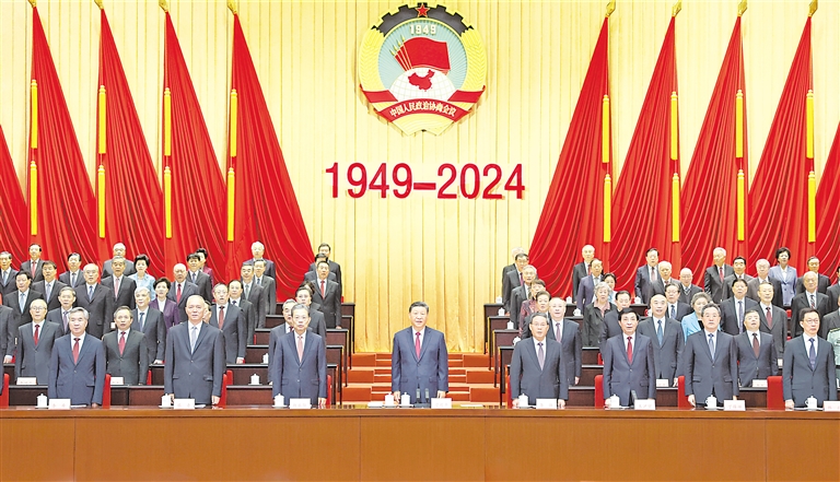 大会在雄壮的国歌声中开始。习近平发表了重要讲话。他指出,75年来的实践充分证明,人民政协是中国共产党把马克思列宁主义统一战线理论、政党理论、民主政治理论同中国具体实际相结合、同中华优秀传统文化相结合的伟大成果,是中国共产党领导各民主党派、无党派人士、人民团体和各族各界人士在政治制度上进行的伟大创造,具有深厚的文化基础、理论基础、实践基础,具有鲜明中国特色和显著政治优势,是科学、有效、管用的制度安排,在人类政治制度发展史上具有独特政治价值。