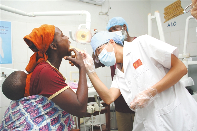 9月20日,在贝宁洛克萨,中国第27批援贝宁医疗队医生为病人开展牙科义诊服务。9月20日是中国的全国爱牙日。 新华社发