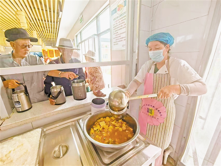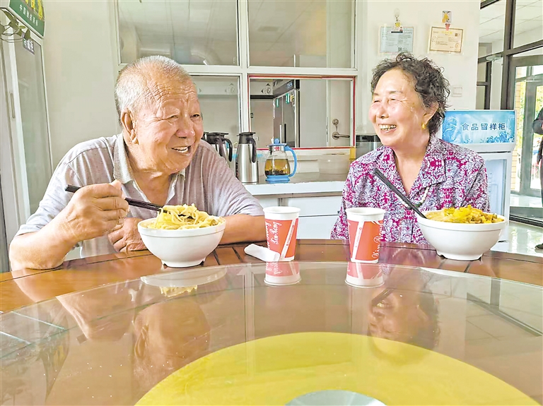 接过热气腾腾的饭菜,吴少山老伴的脸上洋溢着幸福的笑容。“米饭、两菜一汤,天天不重样,隔三岔五还能吃顿饺子,价格也实惠。”