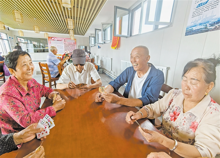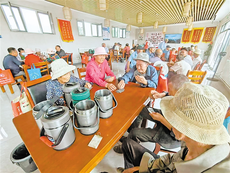 “现在,我每天就像上班一样,到了10点就来,先和村里人打打牌,之后再一起吃午饭。” 欧学珍老人说,到了吃饭时间,星光村老年人公益膳食中心工作人员组织参加娱乐活动的老年人排队打饭。