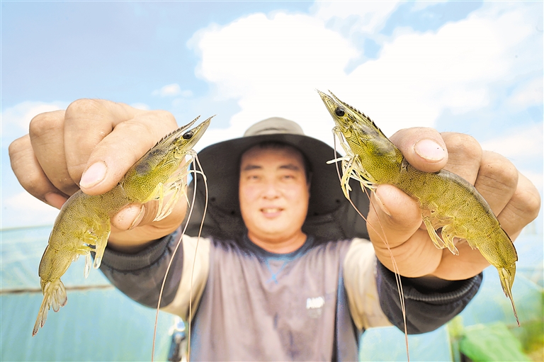 贺兰县立岗镇兰光村水产养殖基地的南美白对虾陆续上市。 本报记者 马楠 摄