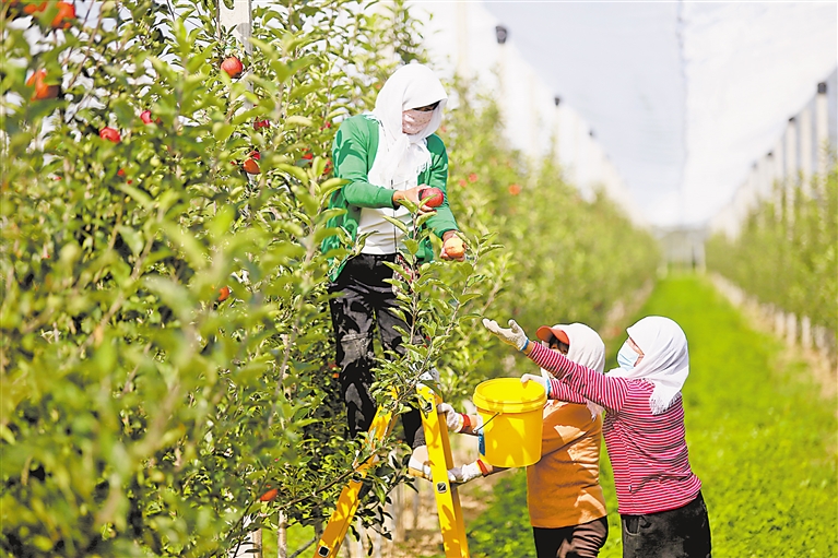 固原市原州区苹果丰收,农户在采摘苹果。 本报记者 师越 实习生 马国军 摄