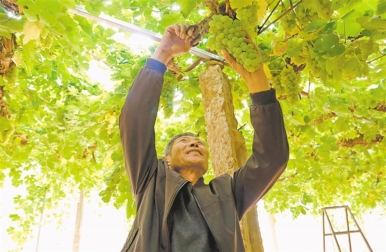 吴忠市利通区白寺滩村葡萄丰收了。 本报记者 铁志平 实习生 马磊 摄