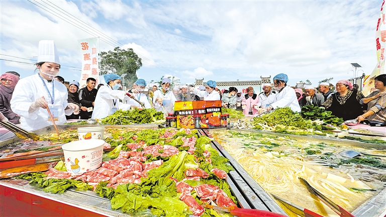 “中国农民丰收节”当天,平罗县高庄乡百余人同吃大火锅。 本报记者 姬禹 摄