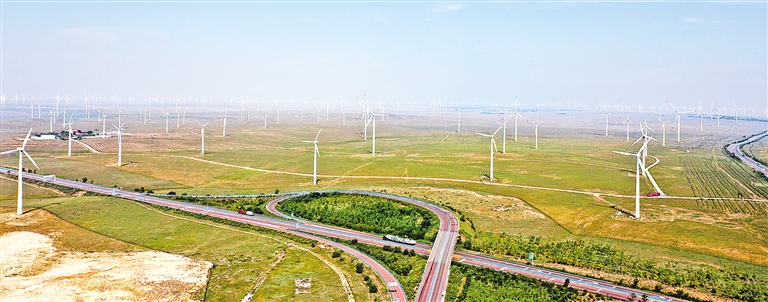 9月22日,记者在吴忠市太阳山开发区拍摄的风电基地。太阳山开发区现有新能源规上企业14家,建成并网装机总容量达到241万千瓦,其中:建成风电风机1038台,并网装机容量170万千瓦,光电并网装机容量71万千瓦,目前新能源年发电量43亿千瓦时,实现年产值21亿元。 本报记者 丁建峰 摄
