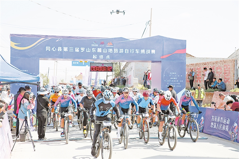 9月22日,同心县第三届罗山东麓山地旅游自行车挑战赛在同心县韦州镇开赛,比赛吸引了来自全国21个省市的400名山地自行车爱好者参赛。 本报记者 杜晓星 摄