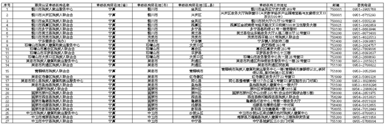 2024年全国残疾人按比例就业情况联网认证事项宁夏回族自治区审核机构信息一览表