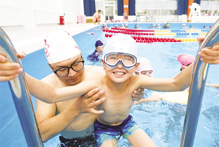 9月24日下午,银川市兴庆区第四小学四年级49名学生由老师带领来到学校附近游泳馆,在游泳教练的指导下,下水练习踩水、憋气、换气、漂浮、站立等动作。兴庆区将从普及游泳知识、培训游泳技能、挖掘游泳后备人才三方面有序推进“游泳项目进校园”工作。目前,兴庆区第四小学、兴庆区第六小学湖滨校区已开设游泳试点课程。 宁夏日报报业集团全媒体记者 高晓刚 摄