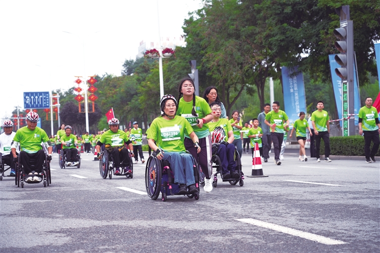 2024年9月8日,全区近200名重度肢体残疾人及志愿者齐聚2024宁夏黄河金岸(吴忠)马拉松欢乐跑赛道,参与健身运动,传递自强精神,共享体育运动带来的快乐。