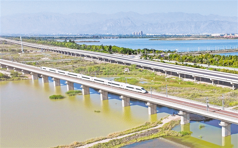 10月1日,包银高铁惠农至银川段正式开通运营,与银西高铁、银兰高铁实现大连通,石嘴山市接入全国高铁网。包银高铁惠银段是我国“八纵八横”高铁网北京至兰州通道的组成部分,线路全长97公里,设计时速250公里。 本报记者 王猛 马楠 白茹 李宏亮 摄