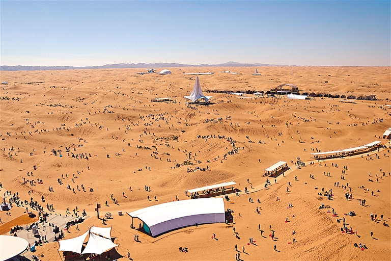 10月2日,游客在中卫市沙坡头景区游览。国庆假期期间,文旅市场延续火热势头,文旅消费潜能持续释放。 新华社记者 毛竹 摄