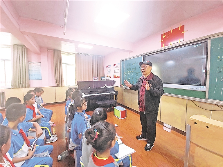 刘晓鹏在学校里普及推广京剧艺术。 本报记者 王刚 摄