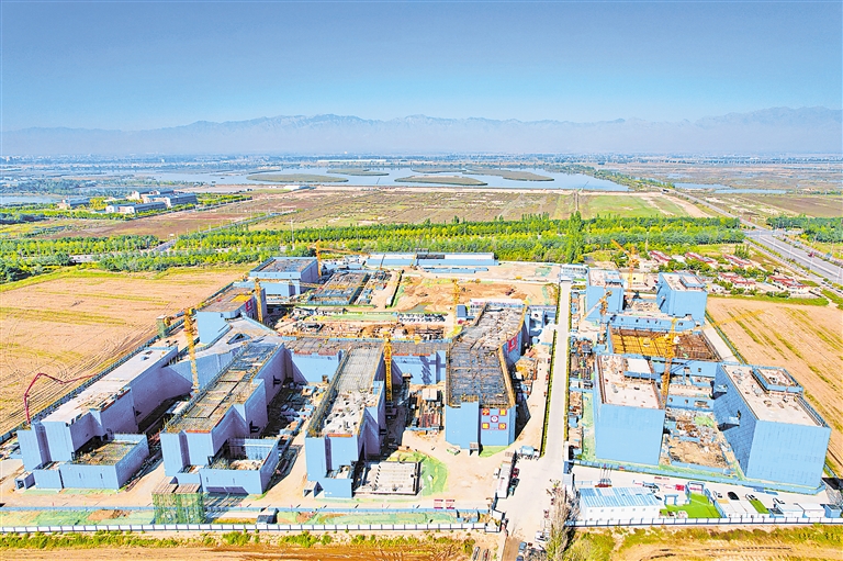 10月3日,银川市阅海湾高级中学项目建设正酣。该项目位于银川市金凤区亲水大街与阅海路交会处东南侧,预计明年7月交付使用。 本报记者 马楠 摄