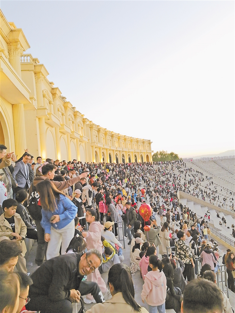 国庆节假期银川览山公园迎来客流高峰,10月1日—4日累计接待游客21万人次。 宁夏日报报业集团全媒体记者 焦小飞 摄