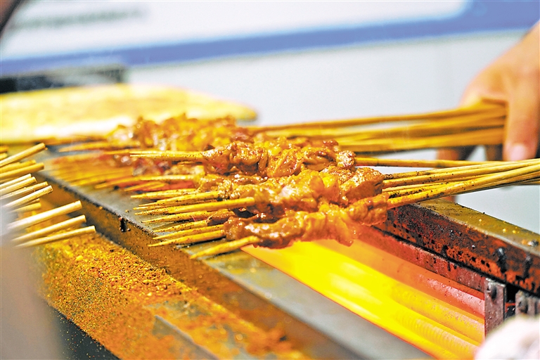 在石嘴山市大武口区夜市,来一份大武口凉皮,入口滑而不腻,薄而筋道,酸辣爽口。银川市怀远夜市,辣糊糊摊位前熙熙攘攘,挤满了为满足味蕾寻找的食客。