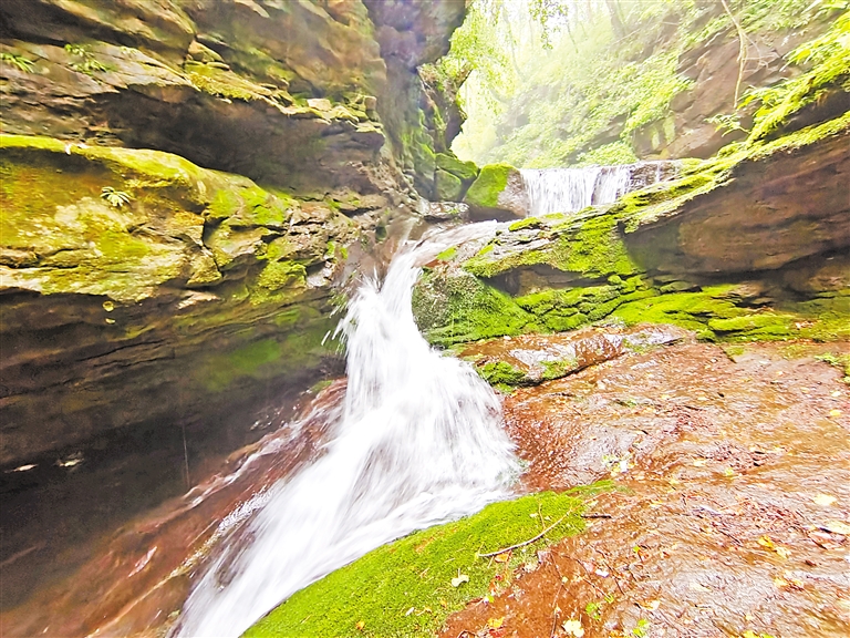 六盘山国家森林公园小南川腹地,峡谷内淙淙流水,飞瀑跌落,拍打着河床上的石头,叮咚作响,一路水石并行,欢歌吟唱。秋风拂过,六盘山上松涛阵阵,似波浪起伏,又如万马奔腾。