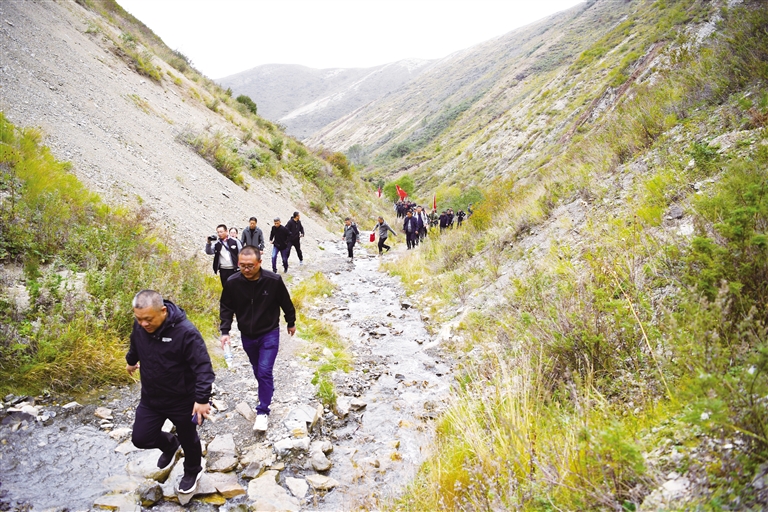 徒步实践活动从固原市原州区张易镇启程,沿着山路穿越风景如画的莲花沟,一路攀登,最终到达开城镇红军长征青石嘴战斗纪念碑。全程17公里的征途,历时5个多小时。“89年后的今天,我们沿着伟人的足迹,聆听历史的深沉回响,接受精神的洗礼,心中充满了激动与自豪。”陕西省延安市委党史研究室主任胡建满富有激情地说。