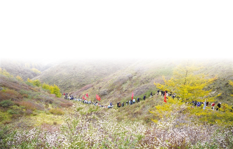 秋日的六盘山莲花沟,宜人的景色与热烈的氛围交织成一幅动人的画卷。红旗在秋风中猎猎作响,红歌旋律激荡人心,参与者们步伐坚定有力。连绵起伏的大山被五彩斑斓的树叶点缀,静静地诉说着往昔的峥嵘岁月。清澈的溪水潺潺流过沟壑,清脆悦耳,为徒步实践活动增添了几许生机与活力。