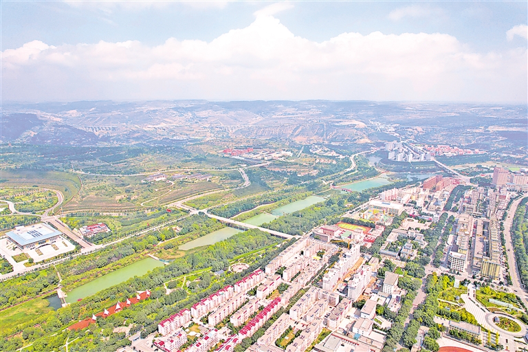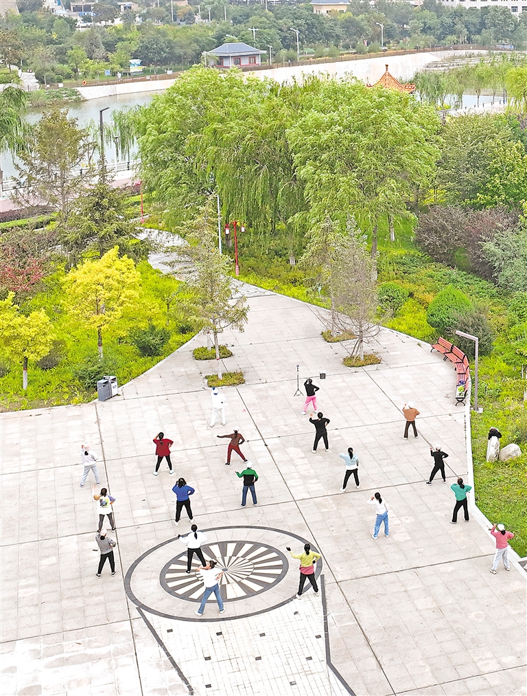 清水河流过固原市原州区,河道两岸生态优美,成为市民的休闲场所。