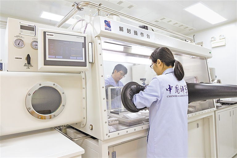 9月24日,科研人员在月球样品实验室的解封操作台上处理嫦娥六号月球样品。