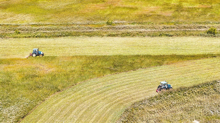 时下,山东省滨州市沾化区海防办事处1.2万余亩芦苇进入收割期。芦苇收割打捆后将销往内蒙古,加工成肉牛青贮饲料,进一步提升其附加值。
