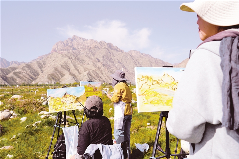 10月15日,来自全国各地的绘画爱好者用画笔描绘贺兰山的壮丽秋色与生态治理的丰硕成果。当日,《塞上江南·贺兰山秋》线下写生课活动在银川举行。