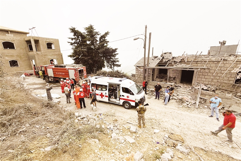 10月14日,救援人员在黎巴嫩北部艾托地区遭袭击地点附近工作。黎巴嫩红十字会14日发表声明说,以色列军队对黎巴嫩北部艾托地区发动袭击,造成至少18人死亡、4人受伤。 新华社/路透