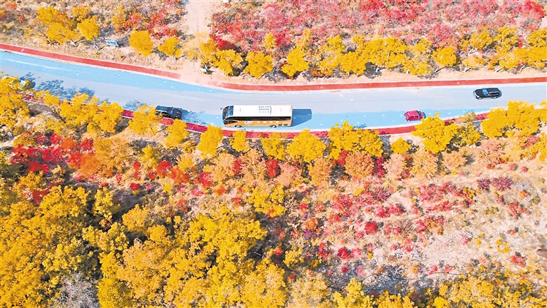 10月14日,石嘴山市大武口区北武当生态旅游区,十里红叶美不胜收。据了解,北武当秋季红叶景观植物以火炬树为主,绵延的红叶景观区让人流连忘返。 本报记者 姬禹 龚依然 摄