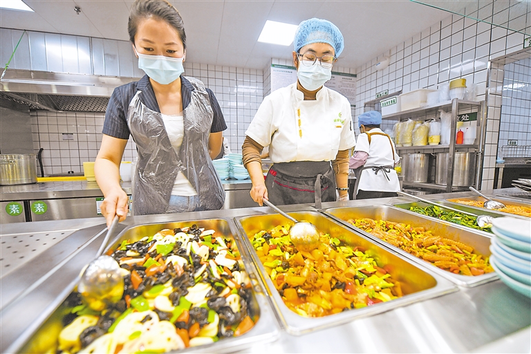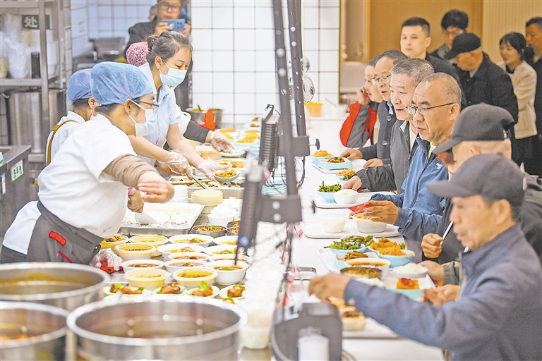 该社区食堂场地由银川市住建局免费提供,以“街道引导、社会化运营、公益属性、综合监管”为经营原则,集智能化出餐、网格化管理、营养膳食分析等功能于一体,建立“食堂+助餐点集中配餐+共享服务”的助餐服务模式,实现辖区就餐群体“全龄+全能”全覆盖。