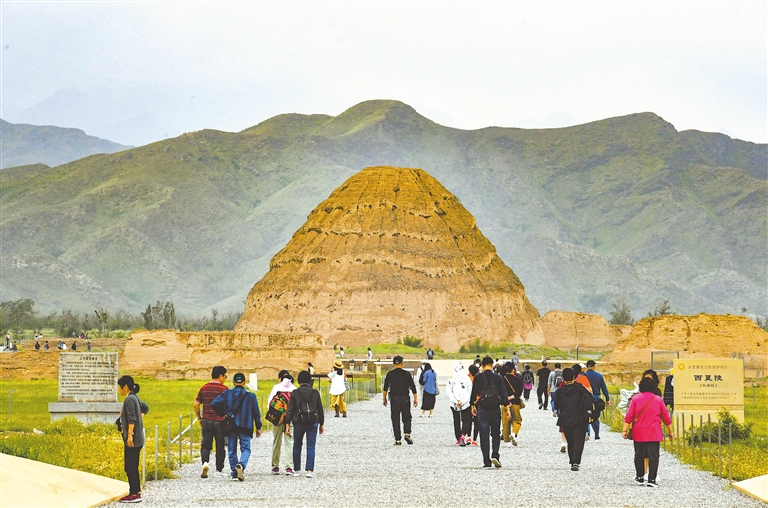 游客在西夏陵游览。