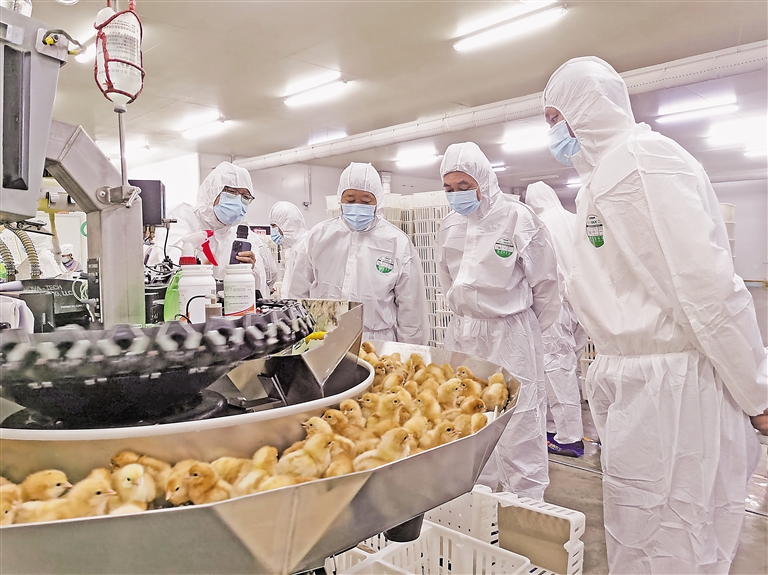 永宁县法人科技特派员在宁夏晓鸣农牧股份有限公司雏鸡孵育车间。