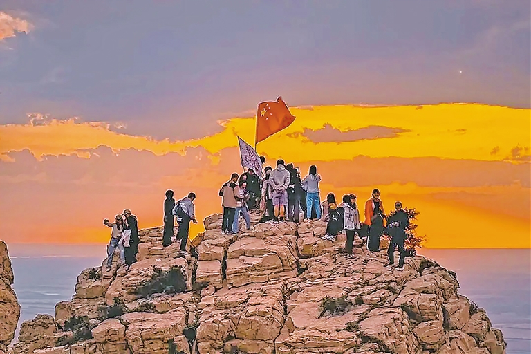 夜爬贺兰山迎接日出,是许多人独特而浪漫的体验。“登上贺兰山看日出太震撼了,尤其当太阳升起时,所有人挥舞着红旗,齐声高唱《我和我的祖国》,真是心潮澎湃,激动万分!”一场青年人自发登贺兰山看日出的活动火了,参与者小宁说。