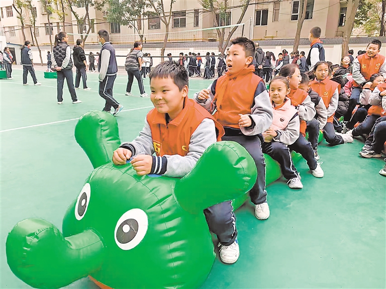 “先让孩子会玩、有兴趣玩,下一步我们再玩出花样,玩出名堂。”为了让孩子“玩”好,兴庆区六小中山校区计划按班级开展各类比赛,以赛促玩。“我们计划开展毛毛虫比赛、跳绳比赛、沙包比赛,每个班级每周比赛项目不同,各班级间轮换着开展,通过这样的方式调动师生参与热情。”王欢欢介绍。