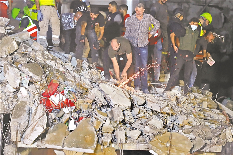 10月29日,搜救人员在黎巴嫩西顿一栋被以色列空袭的建筑中开展搜救工作。黎巴嫩公共卫生部28日发布通报说,以色列当天空袭黎巴嫩东部贝卡谷地,造成至少60人死亡。根据黎巴嫩公共卫生部28日公布的统计数据,自去年10月初以来,黎巴嫩真主党与以色列之间的冲突已在黎巴嫩造成2710人死亡。 新华社/美联