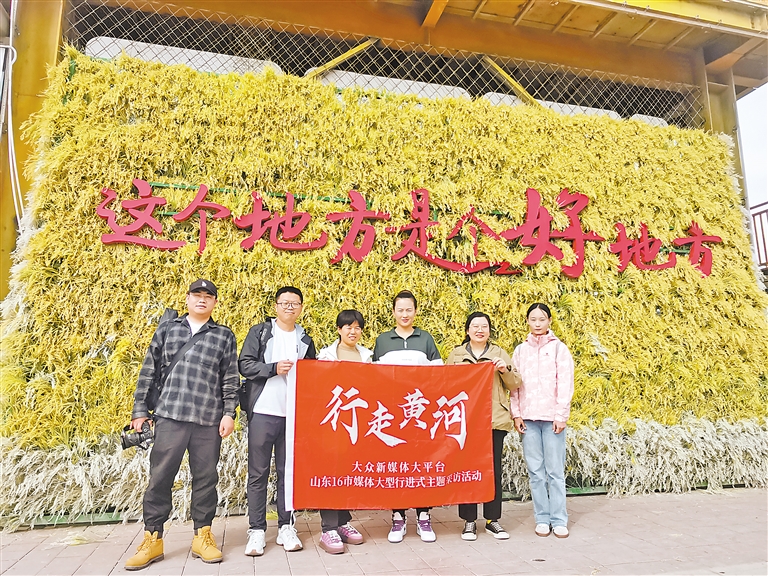 “行走黄河”记者和稻渔空间工作人员合影。 (本版图片除署名外均由大众新闻·齐鲁壹点记者 杨璐 摄)