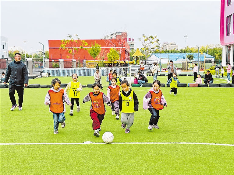 11月7日,平罗县第一幼儿园的孩子们在踢足球。目前,该县有8所幼儿园被教育部命名为“全国校园足球特色学校”,从幼儿园到小学校园足球发展实现了梯次衔接,为各小学校园足球发展输送了300余名优秀足球人才。 本报记者 姬禹 摄