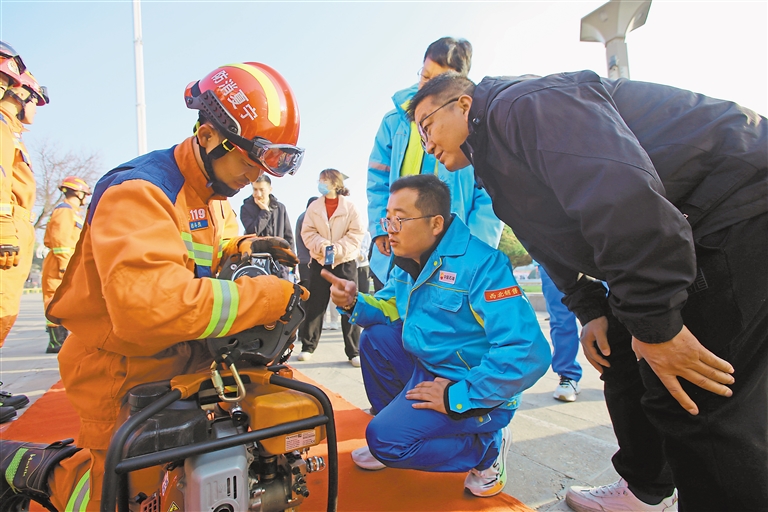 11月8日,在银川光明广场,消防员向群众讲解消防救援工具使用方法。 宁夏日报报业集团全媒体记者 苏克龙 摄