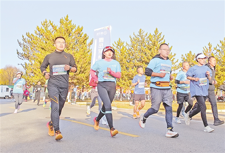 11月10日,选手们在比赛中。当天上午,“雁岳赋杯”固原市首届半程马拉松赛暨宁夏师范大学首届半程马拉松赛开赛,吸引了宁夏师范大学在校大学生以及固原市民的积极参与,享受跑步的乐趣。本报记者 李宏亮 摄