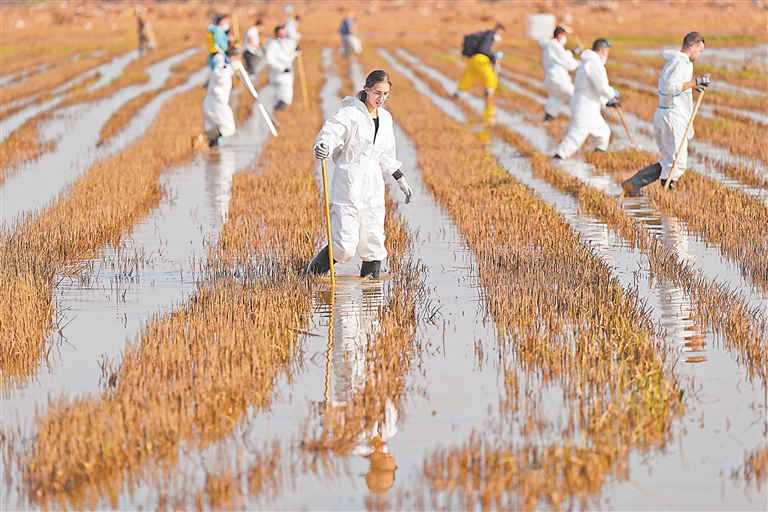 11月9日,在西班牙瓦伦西亚,志愿者们搜寻洪灾遇难者遗体。西班牙东南部10月29日晚至30日凌晨普降暴雨,引发严重洪灾。西班牙巴伦西亚自治区11月5日通报,上月底发生的洪灾导致当地至少89人失踪。新华社发