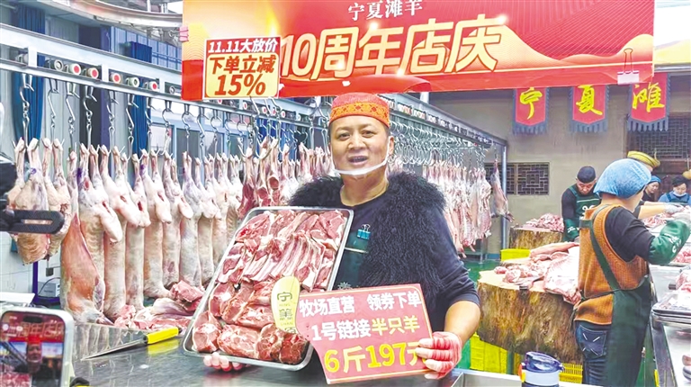 宁羴源是一家牛羊肉电商企业。“双11”期间,该公司安排4名带货主播轮番上阵,加班加点线上抢单。
