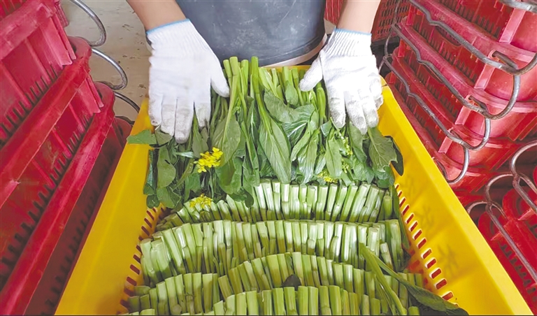 11月6日10时许,大地蔬菜已进入扫尾季,吴忠市茂鑫通冷藏运输有限公司位于吴忠市利通区高闸镇李桥村的露地蔬菜种植基地上,工人将一筐筐新鲜蔬菜通过农运车运往公司农产品物流园冷库。走进物流园,又是一派忙碌景象:工人将新拉运来的成筐蔬菜进行合格检验、分拣加工、农残检测、计量包装、预冷保鲜。茂鑫通公司相关负责人马军说:“蔬菜在冷库车间经数小时的预冷保鲜,即将被装上冷链车。这辆车装载鲜菜30吨,全程冷链温控在3—8摄氏度,32个小时后将直达市民的餐桌。”据了解,茂鑫通近年来打造农业全产业链融合发展模式,地头、冷库链起产销两头,助力宁夏菜心等冷凉蔬菜走出去,每年4月到11月,平均每天的发运量达600吨。